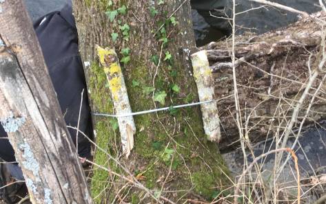 Arbre câblé en pied de berge de la Drouette à Villiers-le-Morhier (28)