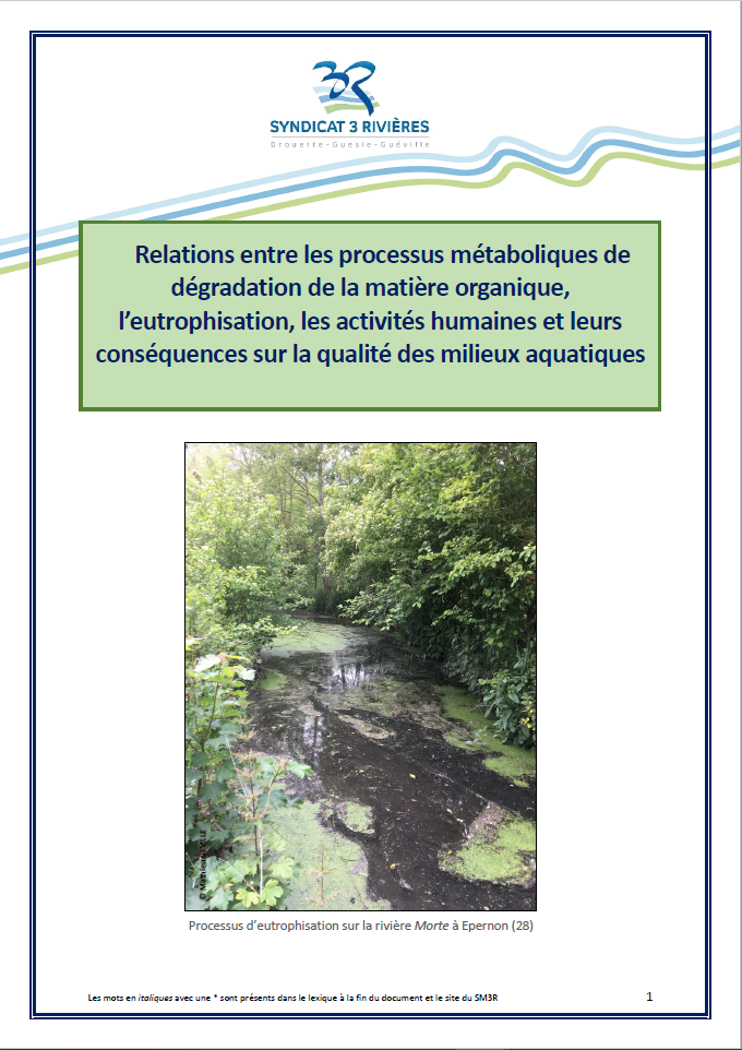 Relations entre les processus métaboliques de dégradation de la matière organique, l'eutrophisation, les activités humaines et leurs conséquences sur la qualité des milieux aquatiques